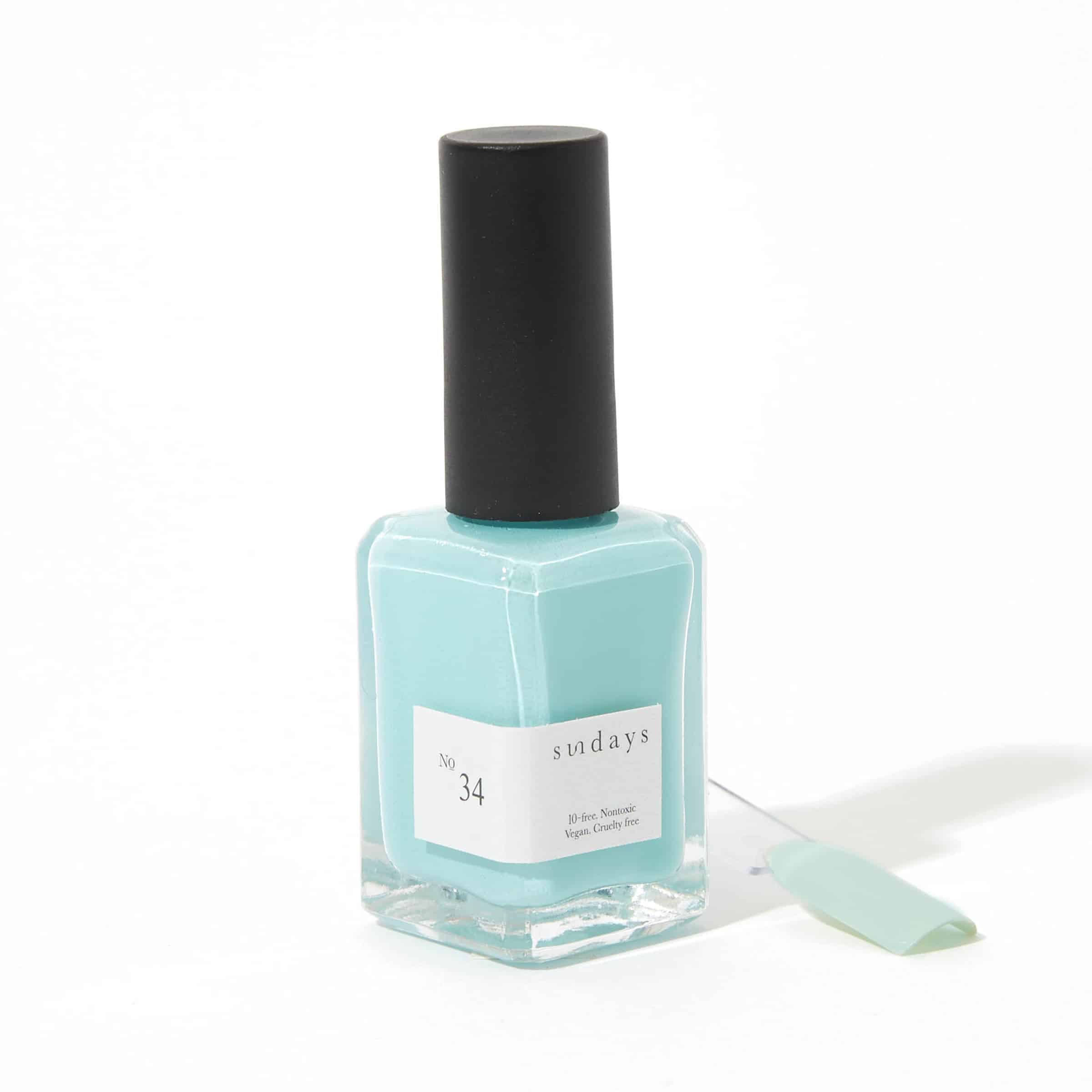 Formulated with your well-being in mind, our non-toxic polishes have a range of timeless colors, with this specific No.34 being an opaque light eggshell turquoise. Our polishes have the perfect bottle shape for grip and a professional-grade flat brush for precise swipes.