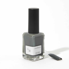 Formulated with your well-being in mind, our non-toxic polishes have a range of timeless colors, with this specific No.32 being an opaque dark olive gray. Our polishes have the perfect bottle shape for grip and a professional-grade flat brush for precise swipes.