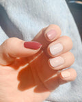 A muted cream red combines with orange and dusty rose, bringing the beauty of a sunset to your nails. A staple fall shade that subtly transitions your daily look for the cooler weather.